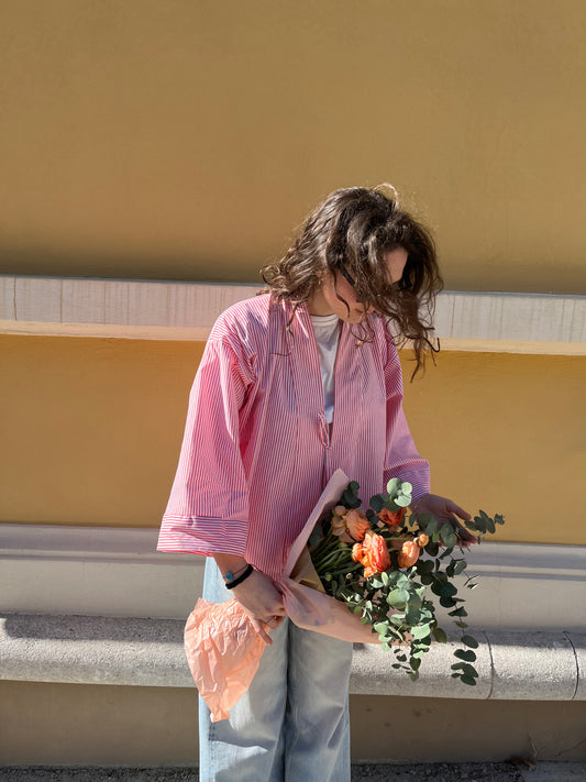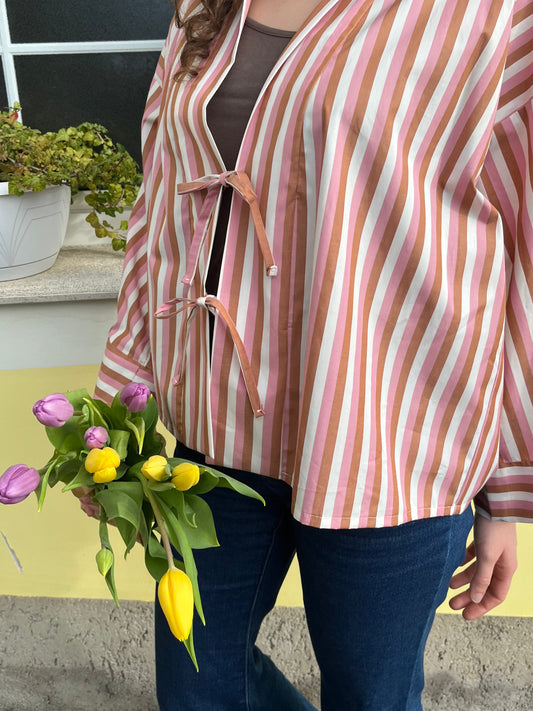 Kimono Camicia a righe Rosa e Marrone