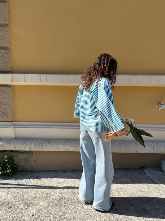 Kimono Camicia a righe Verde Petrolio