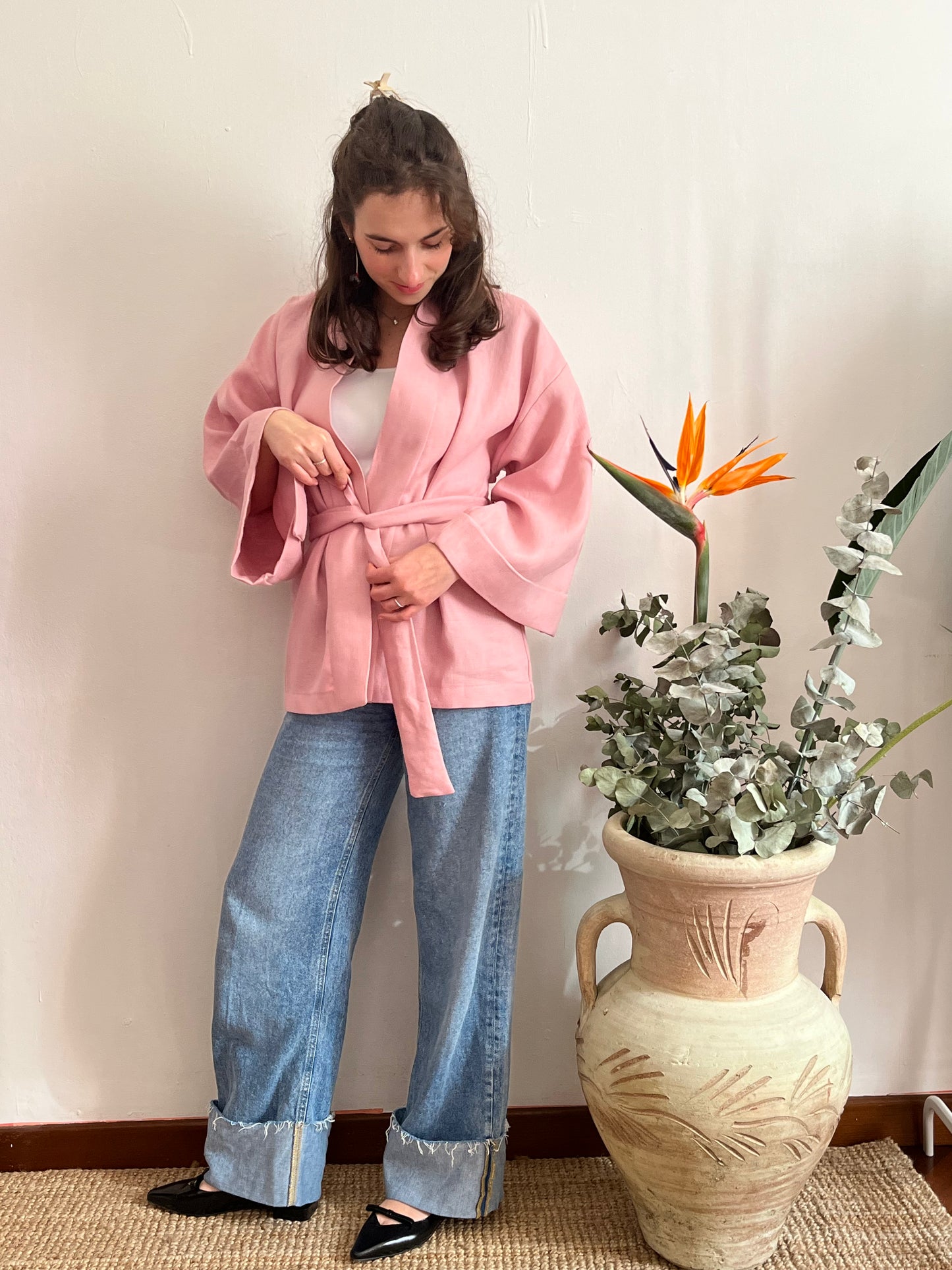 Kimono in lino Rosa Pastello